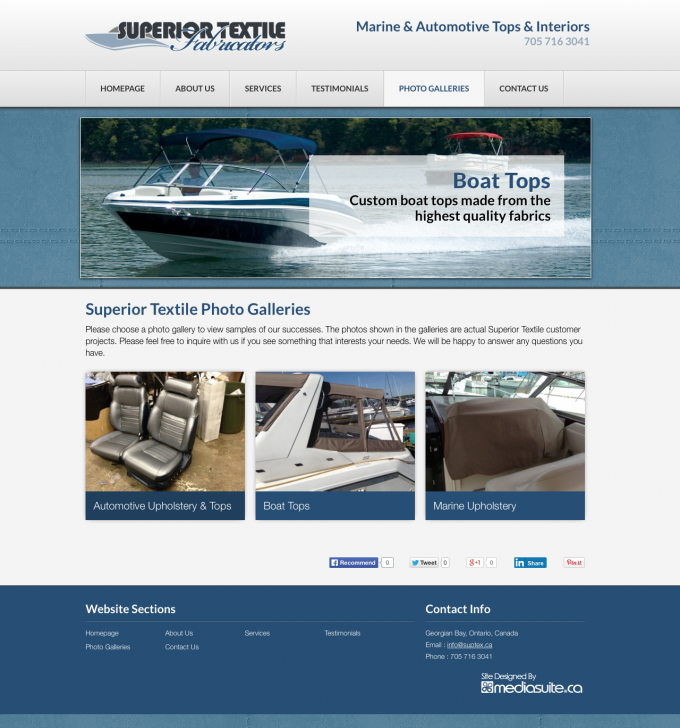 In 2015 we launched this clean, professional custom website design that gives Superior Textiles a professional, attractive and convenient way to share the services they deliver and showcase their photo gallery.