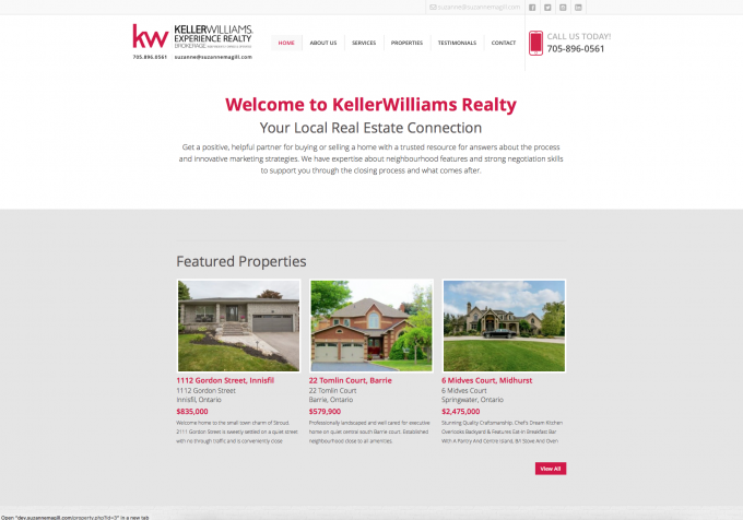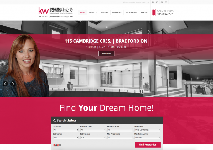 This local real estate agent for Keller Williams needed a clean and professional website which allows her to show not only all MLS inventory but also her own quickly and eaisly. This clean site matches her branding and automatically imports all MLS data automatically. Add to that we have built a custom system which allows Suzanne to add exclusive properties quickly and easily and manage her own "Open House" system!