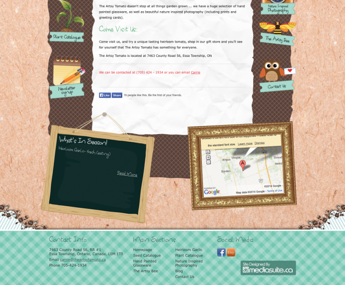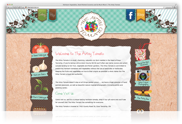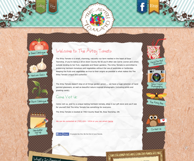 The Artsy Tomato is a small, charming, naturally run farm nestled in the heart of Essa Township. If you're taking a drive down County Rd 56 you'll often see Carrie (owner and artist) outside tending to her fruit, vegetable and flower gardens. For this unique business, we built a wildly graphical website that is as "whimsy" and fun as they are. We can guarantee you have never seen a layout like this before. It was a lot of fun to build and definitely exercised some of our CSS skills.