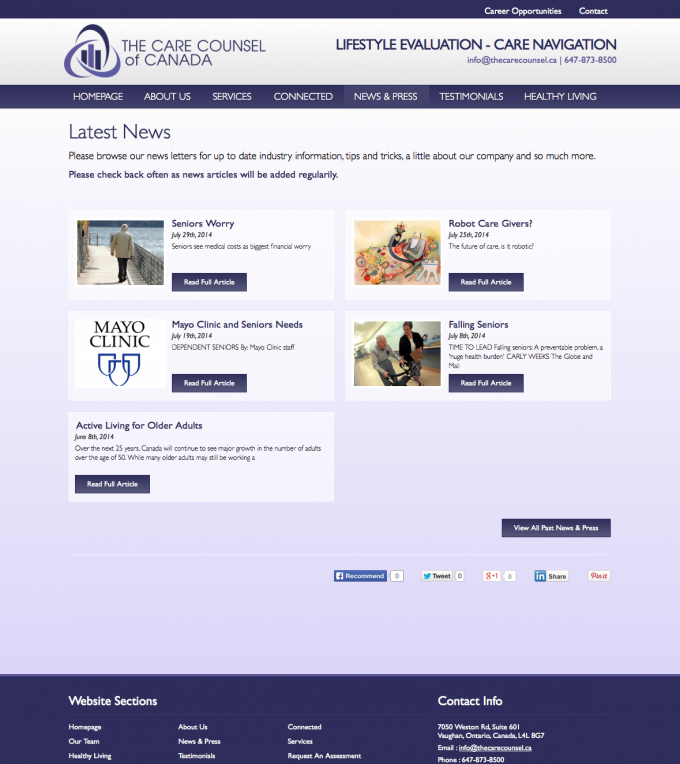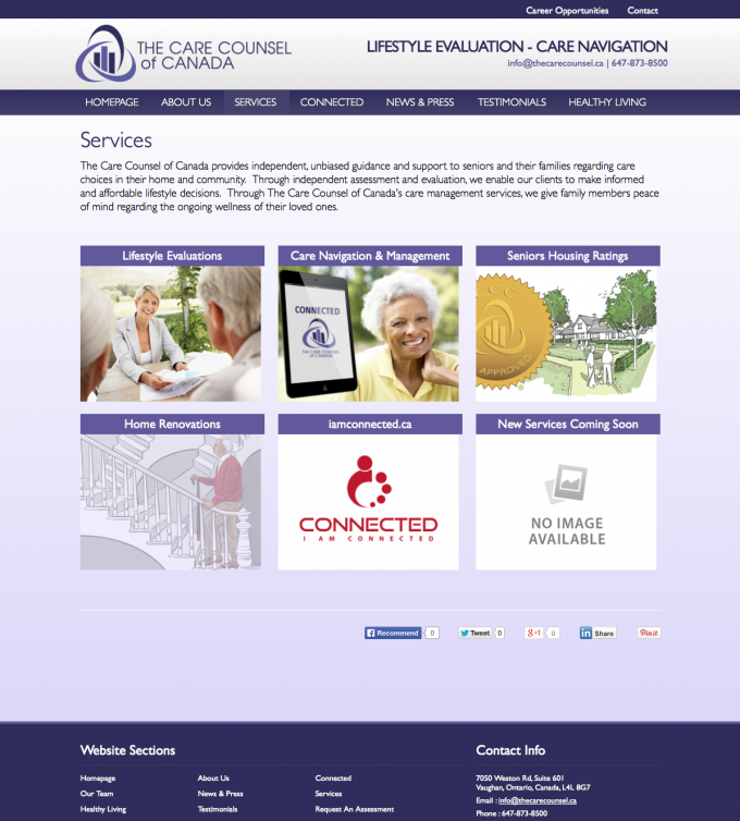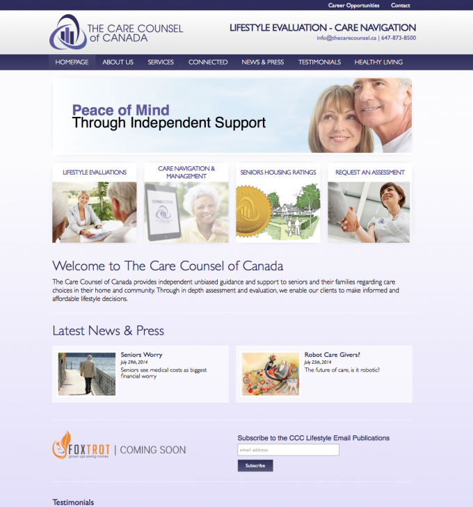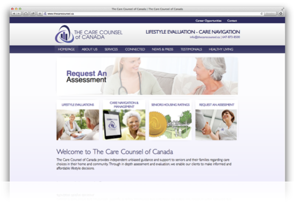The Care Counsel also introduces a medical management system to help seniors stay at home longer and maintain their independence. The website we designed for Care Counsel provides all marketing literature and a lead to their primary online services.