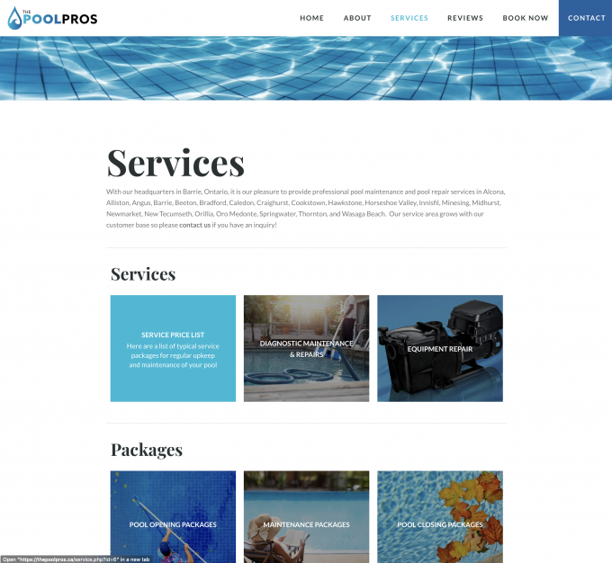 This pool servicing company is a subsidiary of a current client CCS Pools who needed an attractive website with capabilities for online booking and more!