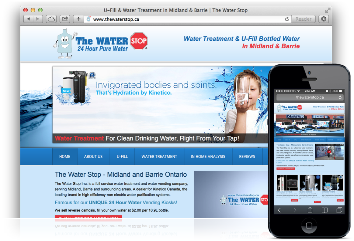 Serving Barrie & Midland, The Water Stop needed a website that was as fresh and clean as the water they produce. This website is highly graphical, yet clean, and crisp and actually may make you thirsty! This unique business has a really exciting competitive edge, which is their Kiosk Water Systems branded under "U-Fill." These systems allow for quick, easy 24hour access to fill your water jugs with fresh filtered water. We developed the website with custom graphics and maps to show the locations of the kiosks and just how easy they are to use.