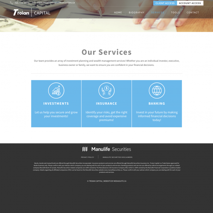 This financial advisor wanted a highly professional website that met all brokerage brand compliances yet provided a unique identity.
