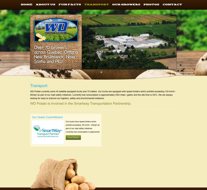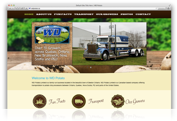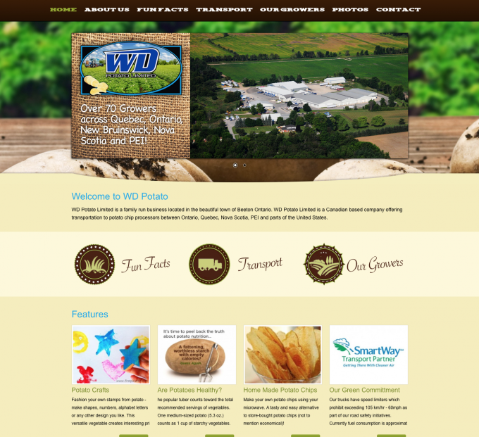 WD Potato Limited is a family run business located in the beautiful town of Beeton, Ontario. WD Potato Limited is a Canadian based company offering transportation to potato chip processors between Ontario, Quebec, Nova Scotia, PEI, and parts of the United States.