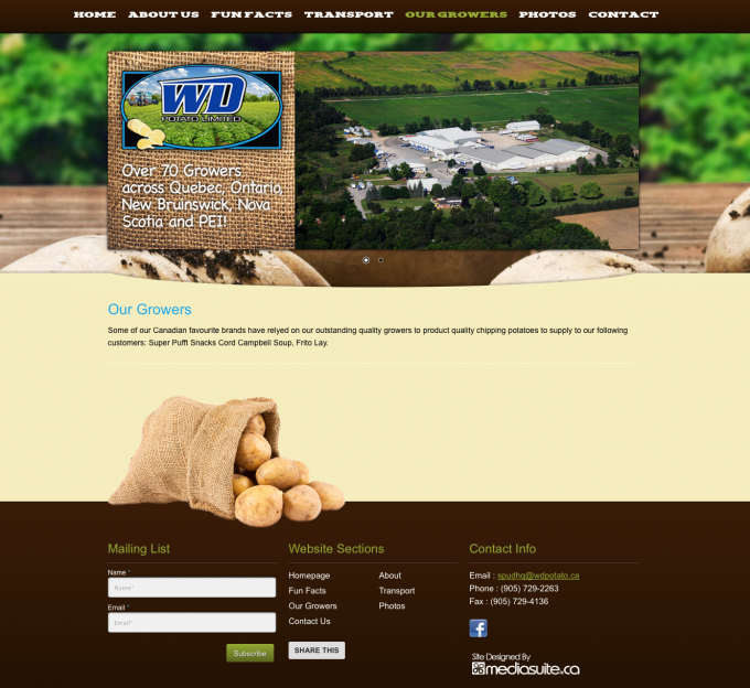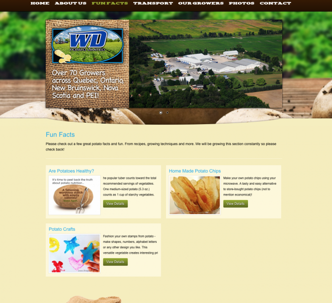 This highly graphical website was a lot of fun to build and offers a true farm feel. Lots of texture, greenscapes, and of course, a bag of potatoes on the footer. Check it out!