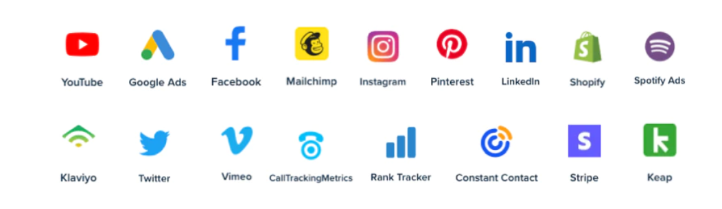 Not a problem! The above data points come standard with our plan and are guaranteed to be set up. For more data, you can add integrations from over 75 other data sources including: