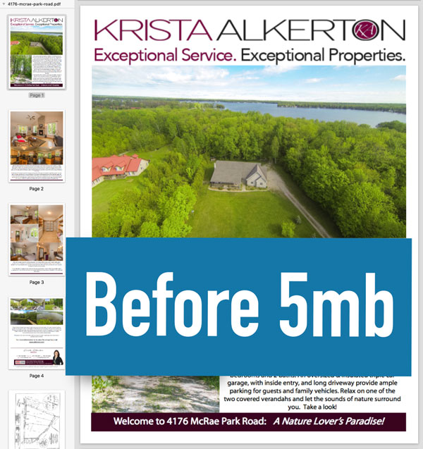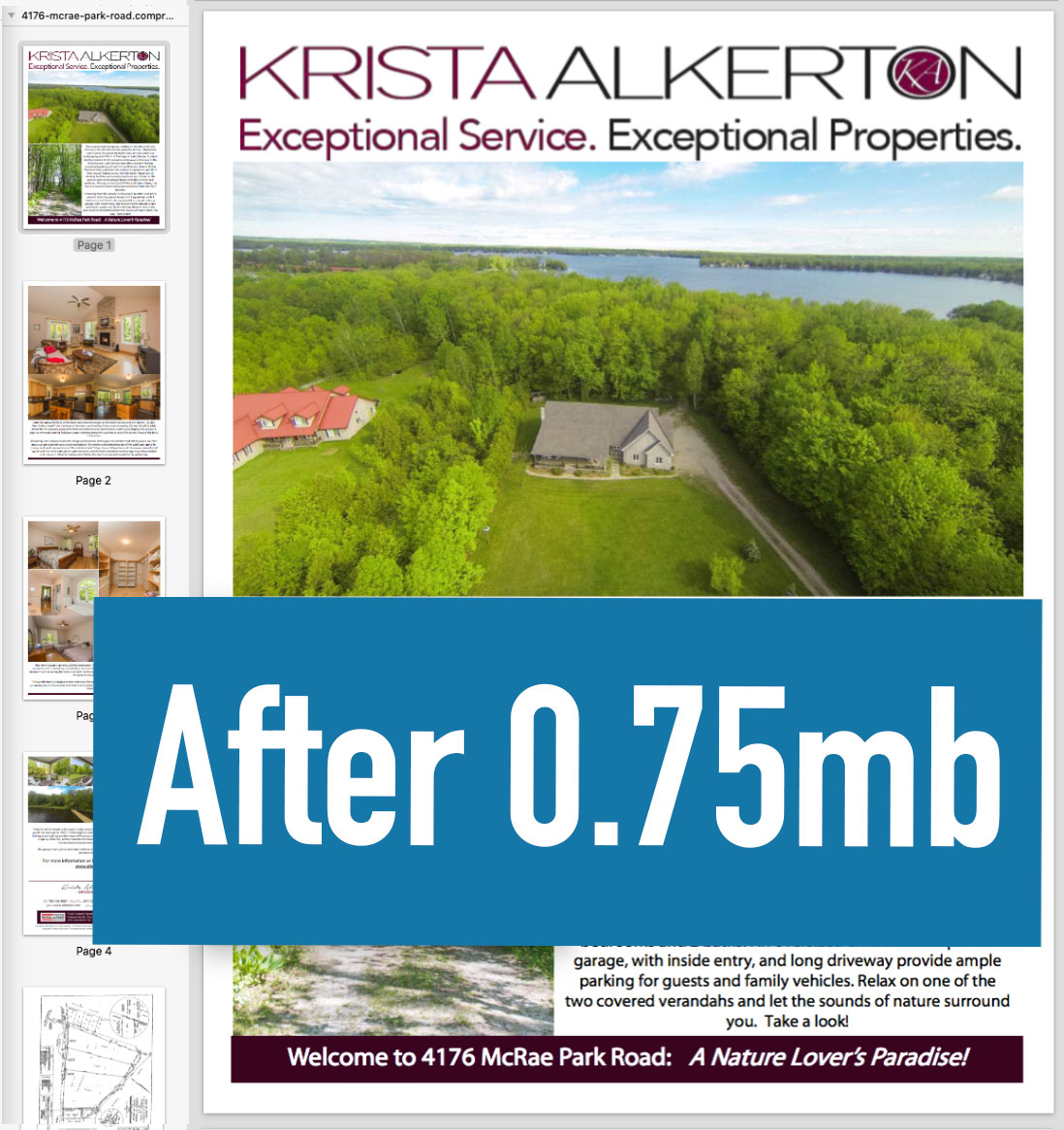 There are many handy websites you can use to compress PDF documents into a much smaller file size for use online with virtually NO loss of quality!