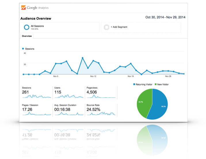 First, we need to know how to read Google Analytics, so let's start with just the basics. On the reports that are emailed monthly, you are given your critical performance details. Let's review those and how they are translated.