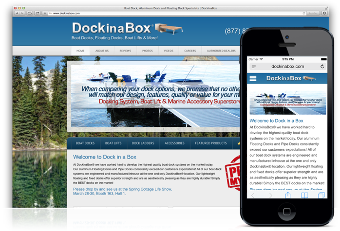 In 2014, we did a ton of really cool updates to the DockinaBox website, including the introduction of a mobile website, a custom lead generating form and so much more! We completely redeveloped the layout of content to make it easier than ever to find the dock, lift, or accessory you need, and consolidated special products that are on sale.